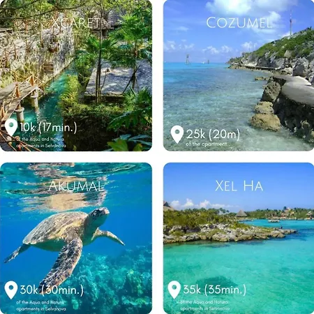 プラヤデルカルメン空港はこの広々としたAquaアパートからどれくらい離れていますか?